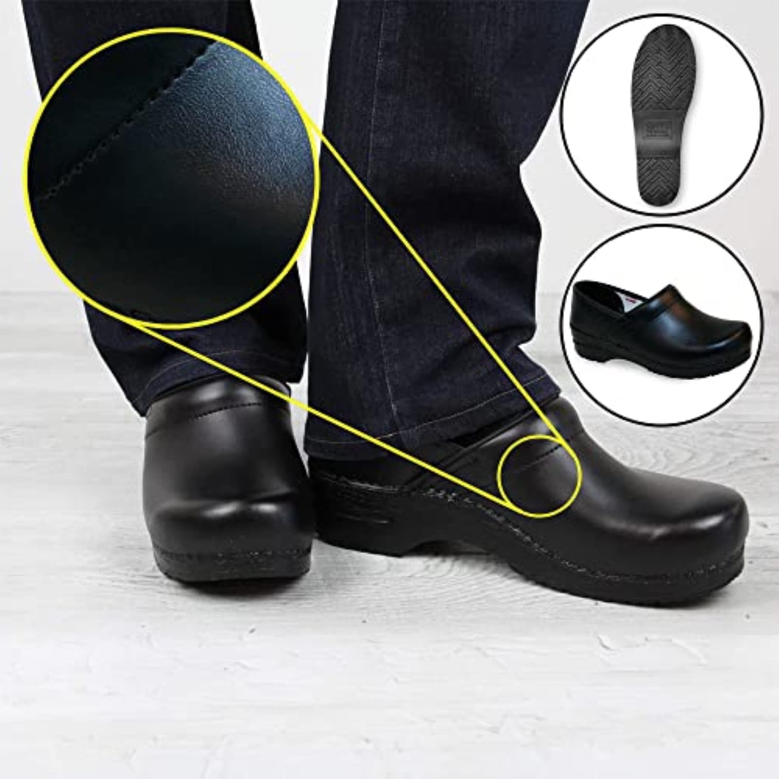 - PROFESSIONAL CLOGS FOR MEN: The Professional PU style features a polyurethane-coated leather upper with a padded instep and a microfiber insole with an anatomically correct footbed. The polyurethane outsole features a rocker bottom. This style is approved by the APMA and part of our Professional Collection.